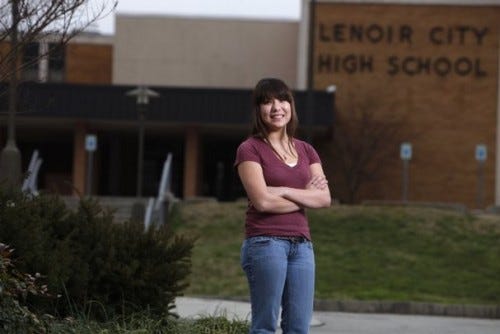 Una profesora ha hecho sus preferencias religiosas conocidas por llevar una camiseta con un crucifijo dibujado al desempeño de sus funciones como empleada pública. Además, Kristi Brackett, de último curso en Lenoir City High School, ha dicho que la maestra "recomienda encarecidamente que nos unamos a [un club religioso] y a estar en el equipo de liderazgo del grupo". Una vez más, esto viola la Cláusula del Establecimiento de la Primera Enmienda. Cuando se le preguntó si esto era cierto, la maestra respondió: "Como profesora, yo nunca usaría mi poder de influencia para forzar mis creencias o las creencias de [un club religioso] sobre ningún estudiante en la escuela". No obstante, las camisetas religiosas siguen siendo inadecuadas en el contexto escolar. Los profesores tienen prohibido hacer conocer sus preferencias religiosas, la Constitución les obliga a ser neutrales cuando actúan en su calidad de maestros de escuela pública.