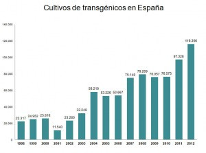 La siembra de maíz modificado genéticamente protegido contra las plagas de taladro ha alcanzado un récord histórico de adopción en 2012 con 116.306 hectáreas, lo que representa el 30% del total de maíz grano sembrado en el país. Así se desprende de los últimos datos ofrecidos por el Ministerio de Agricultura, Alimentación y Medio Ambiente (MAGRAMA) sobre superficies de maíz sembradas en España durante 2012.