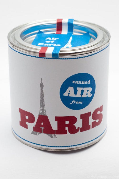 El "AIRE de París" es una lata de tamaño medio llenos del espíritu de la ciudad, un pedazo de patrimonio de la humanidad. La lata es de 88 mm (3,46 pulgadas) de alto y 86 mm (3,38 pulgadas) de diámetro.
