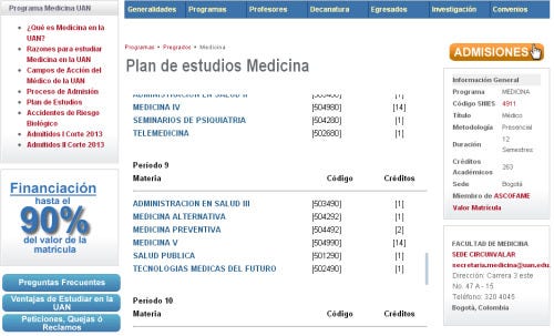 La Universidad Antonio Nariño, dentro de su plan de estudios de Medicina, da la materia de 'medicina' alternativa en IX semestre: