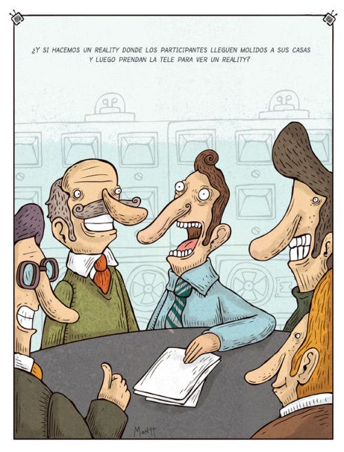 ... hacemos un reality donde los participantes lleguen molidos a sus casas y luego prendan la tele para ver un reality?